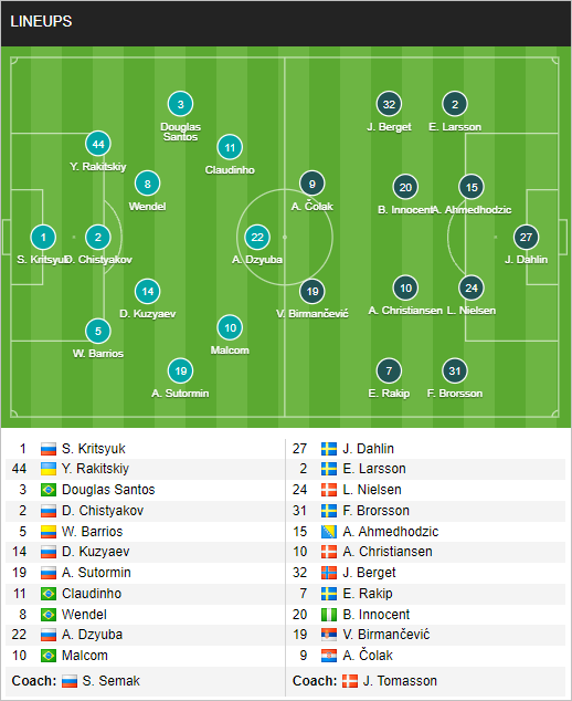 AEGoal cập nhật chính xác ĐỘI HÌNH RA SÂN trận Zenit vs Malmo diễn ra lúc 23h45 ngày 29/9 trong khuôn khổ vòng bảng cúp C1 Châu Âu.