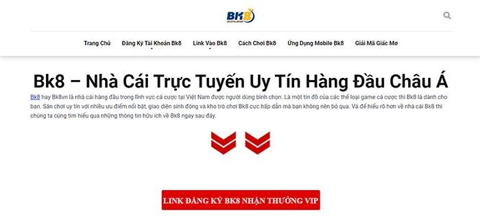Website cung cấp đường dẫn vào nhà cái BK8 - bk8vnmobi.com được đánh giá là một website uy tín, quen thuộc đối với những anh em đam mê cá độ. Tại địa chỉ website cung cấp cho người chơi danh sách đường dẫn chính thống vào nhà cái BK8. Đồng thời liên tục update các link dự phòng để trong trường hợp link chính thống bị chặn, người chơi có thể link hoạt sử dụng các bản link dự phòng để vào nhà cái BK8 nhanh chóng mà không mất nhiều công sức tìm kiếm.